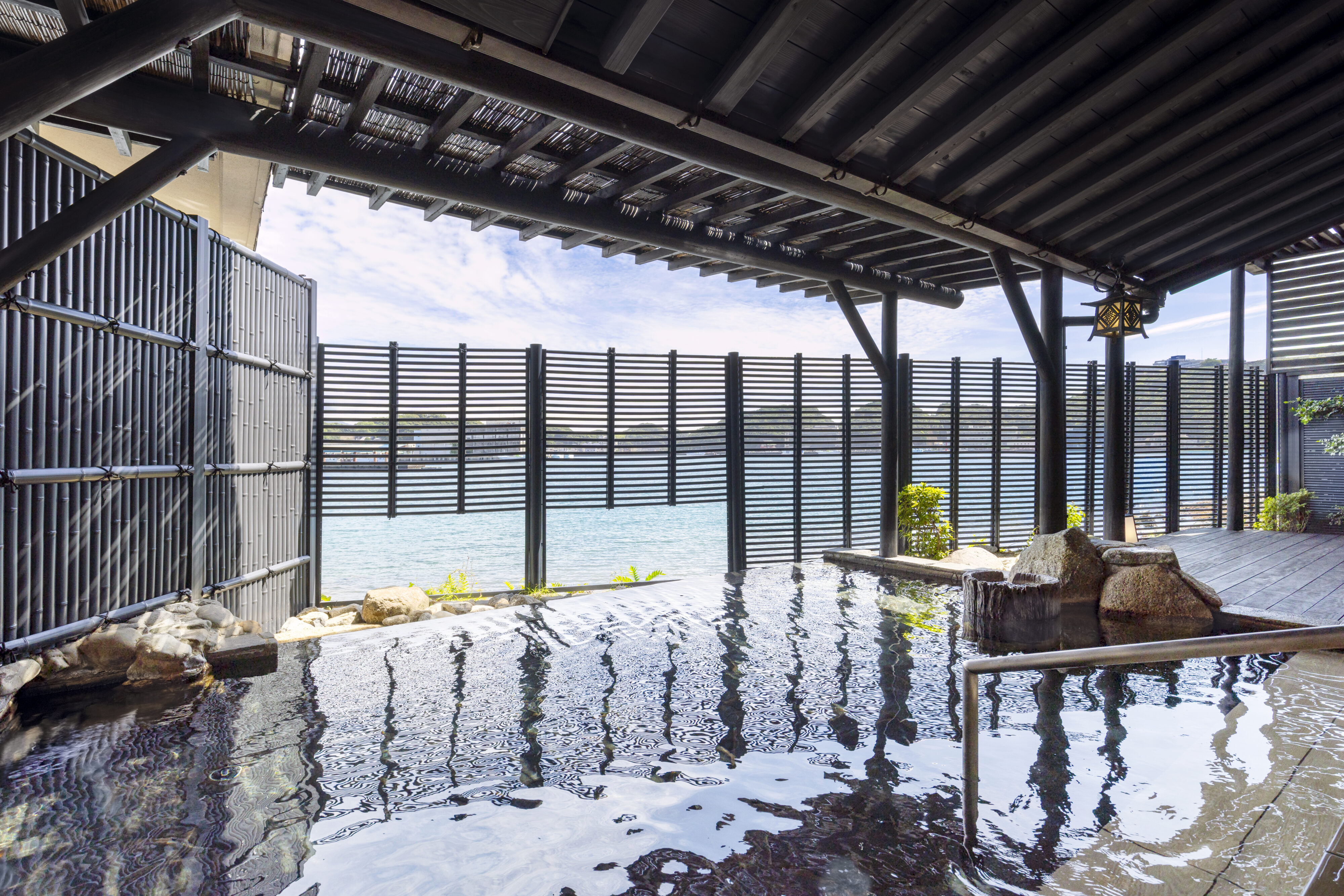 目の前に広がる那智勝浦の風景を楽しめる露天風呂や大浴場、潮風を感じる野趣あふれた庭園露天風呂にて、肌に優しく、湯冷めしにくいといわれている塩化物泉の湯をご堪能ください。