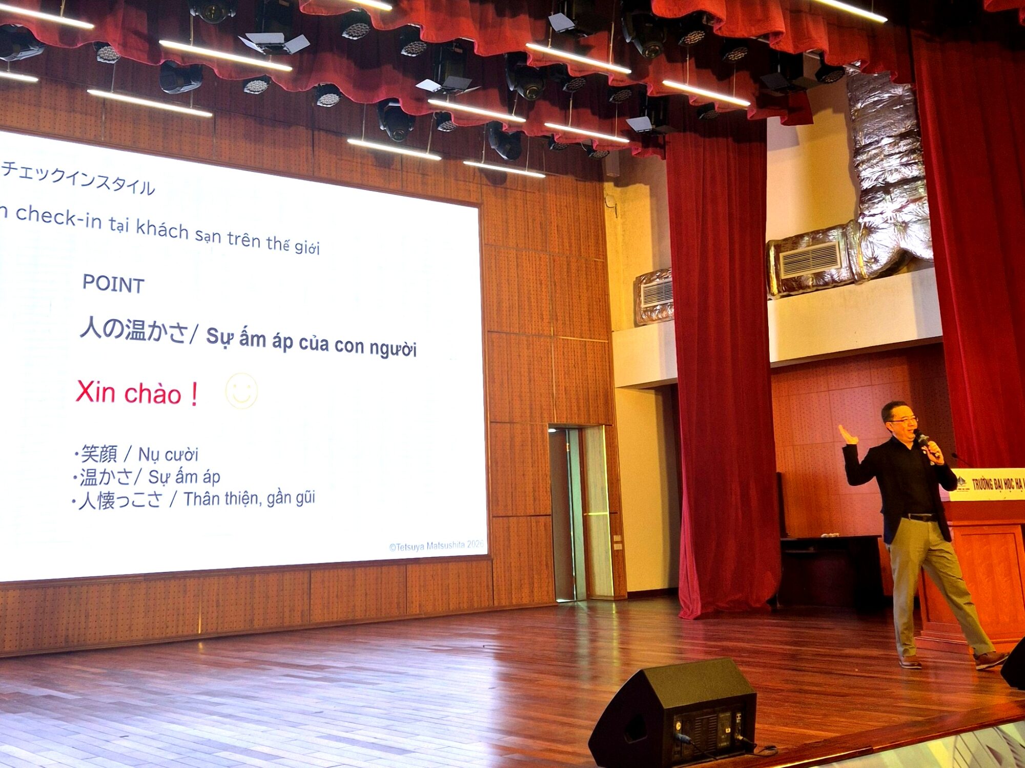 この協定に基づき、2026年3月、当機構理事長 松下哲也 がハロン大学を訪問し、観光学を学ぶ学生約100名を対象に第1回の公式講義(約65分)を実施しました。